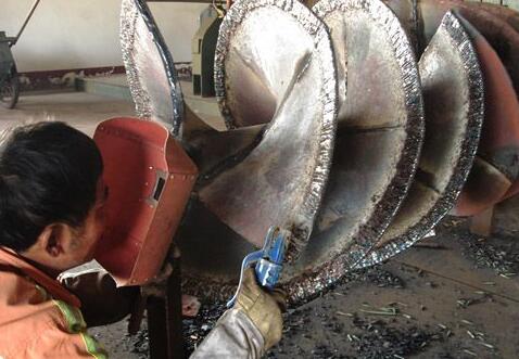 螺旋葉片堆焊后表面光滑度會較粗糙,但耐磨性提高,可以有效的解決螺旋葉片輸送物料時的磨損。