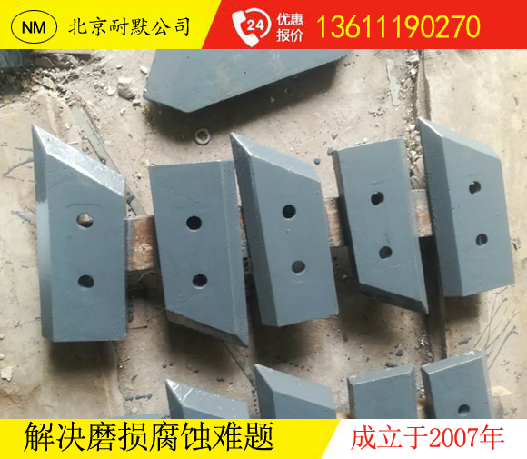 北京耐默公司非金屬耐磨攪拌葉片經玻璃原料廠,在德國EIRICH公司制造的DZV29-3000L及4000L型和國產NQH3000型強制式混合機上實驗證明:使用壽命均在5000小時以上,相同條件下是高錳鋼的20倍左右、高鉻鑄鐵的10倍左右、硬質合金的2倍左右。